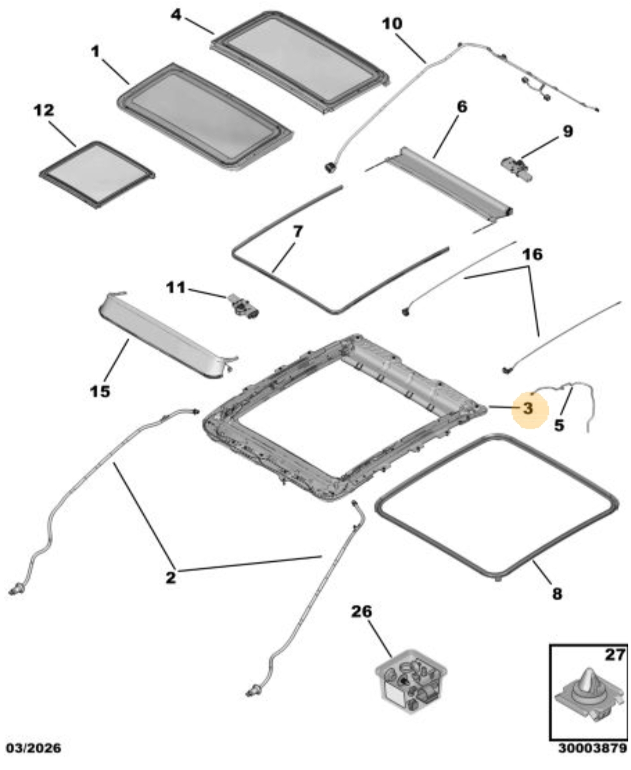 Orijinal Sunroof Kaseti / Sabit Çerçeve 3008 P64 GT 9855009180